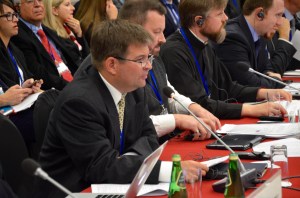 So what happens at these meetings? Well, there are different sessions focused on different topics (e.g., the situation in Ukraine, the latest developments in Azerbaijan, religious freedom in Turkey, etc.). At each of these sessions, diplomats from the countries concerned will present their viewpoint on the question. Other diplomats, maybe from the United States or elsewhere, will express their country’s opinion. Representatives from NGO’s and human rights organizations have a brief opportunity to raise concerns. The meetings are good way to learn about human rights issues through the northern Hemisphere. It’s also a good opportunity to meet with other human rights activists as well as diplomats to discuss human rights concerns. It’s also quite educational to witness how effective some countries, for instance, Russia, are at presenting their propaganda. Plenary sessions are attended by representatives of all member countries. Representatives of NGO’s are also permitted to raise specific concerns at plenaries about issues in particular member countries. In addition to attending plenary sessions, NGO’s can also also organize “side sessions” on issues they consider important. An NGO I’m affiliated with, FOREF (Forum for Religious Freedom Europe), has done this a number of times as a way to raise awareness of religious freedom issues.